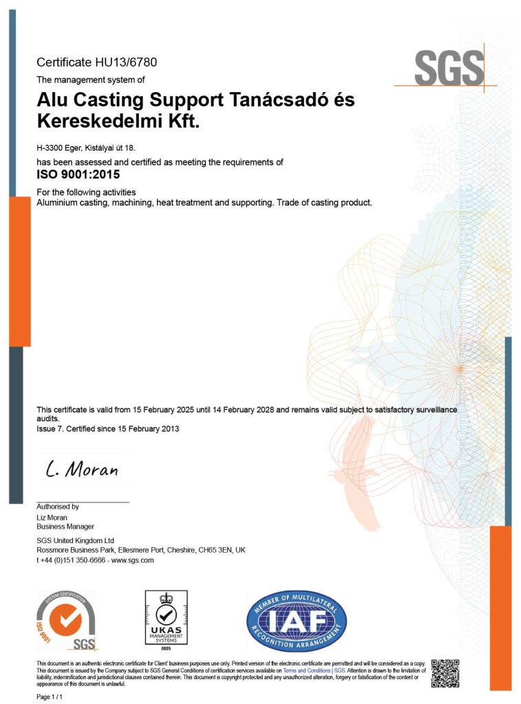 Our company, Alu Casting Support Kft. started its operation in 2011 in Eger, initially with 5 people. Over the past 10 years, our turnover has grown steadily, and we currently have 35 employees. We are included in the 50 leading companies of Heves county.